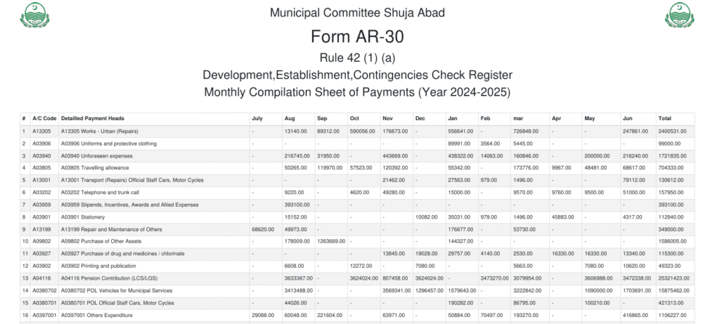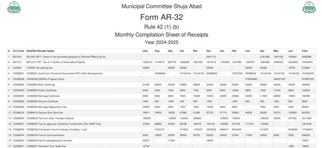 Monthly Receipts 2024-25 Details